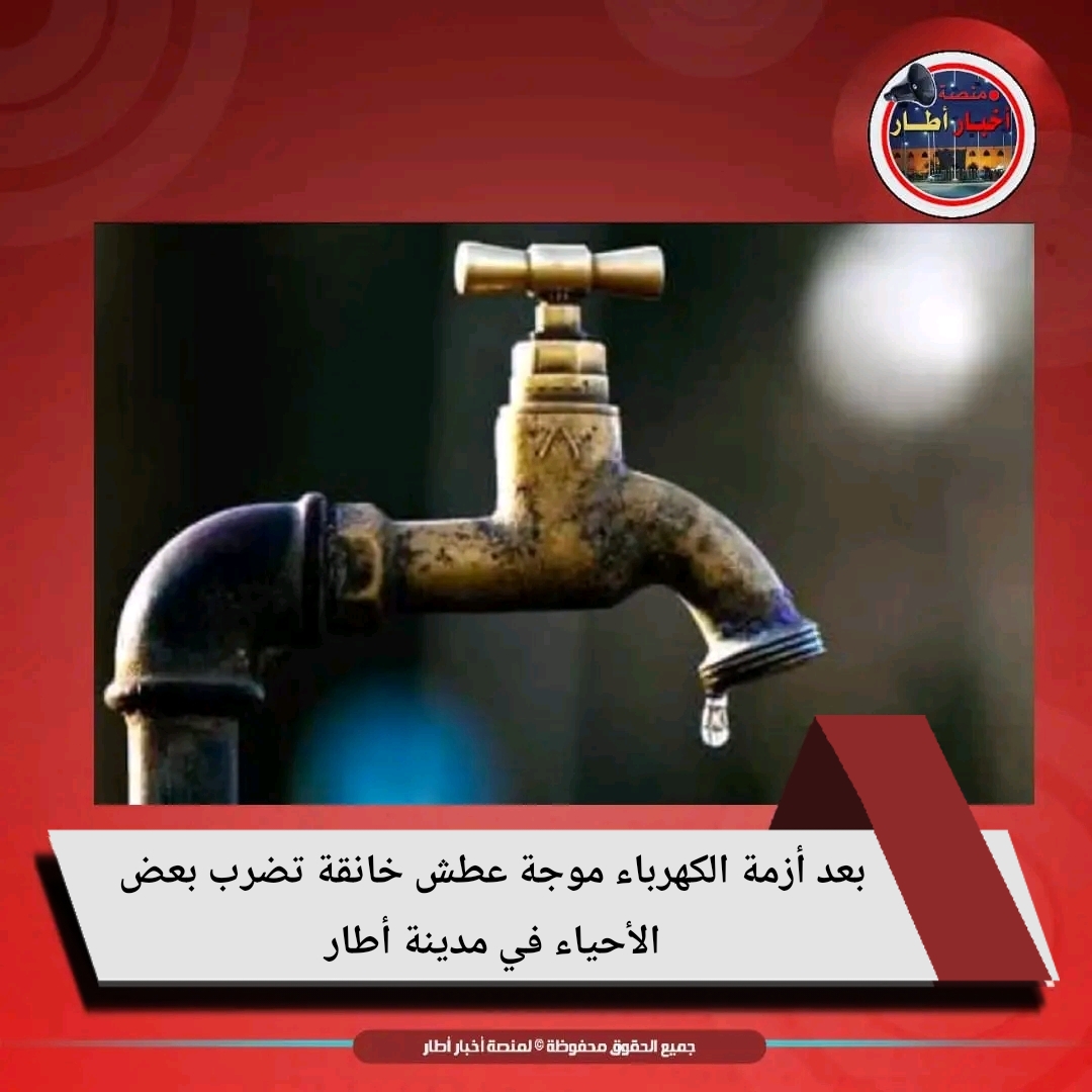 و في إطار محاولة التصدي لموجة العطش التي تجتاح بعض أحياء المدينة ذكرت مصادر أن سقوط أعمدة الكهرباء المزودة للآبار الارتوازية كانت سببا في انقطاع شبكة المياه ، و الأعمال متواصلة من أجل تثبيت الأعمدة.