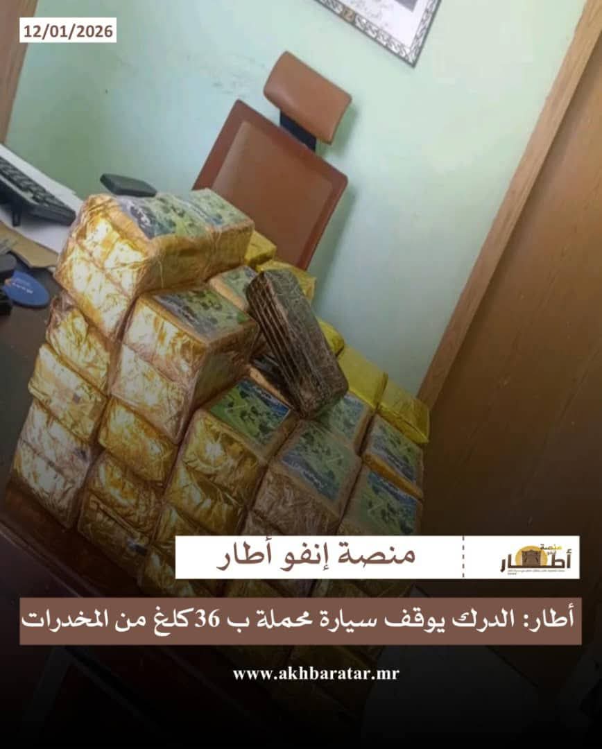 -أخبار (أطار)- أوقف مركز تفتيش تابع لكتيبة الدرك بمدينة أطار، فجر الأحد، سيارة قادمة من مدينة ازويرات في اتجاه نواكشوط، وذلك خلال عملية تفتيش روتينية.