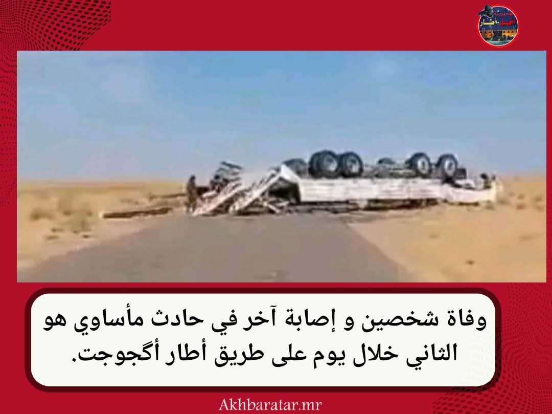 أسفر حادث سير وقع اليوم على طريق أطار أگجوجت قرب قرية يغرف، عن وفاة شخصين و إصابة آخر بجروح متفاوتة الخطورة، إثر انقلاب شاحنة جرارة.