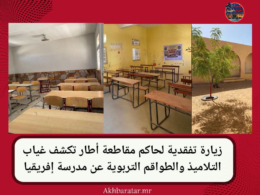 -أخبار (أطار)- أدى حاكم مقاطعة أطار، رفقة العمدة المساعدة للبلدية، زيارة تفقدية خاطفة صباح اليوم لمدرسة إفريقيا رقم 12 ، وذلك في إطار متابعة سير العملية التربوية مع بداية الموسم الدراسي الجديد.