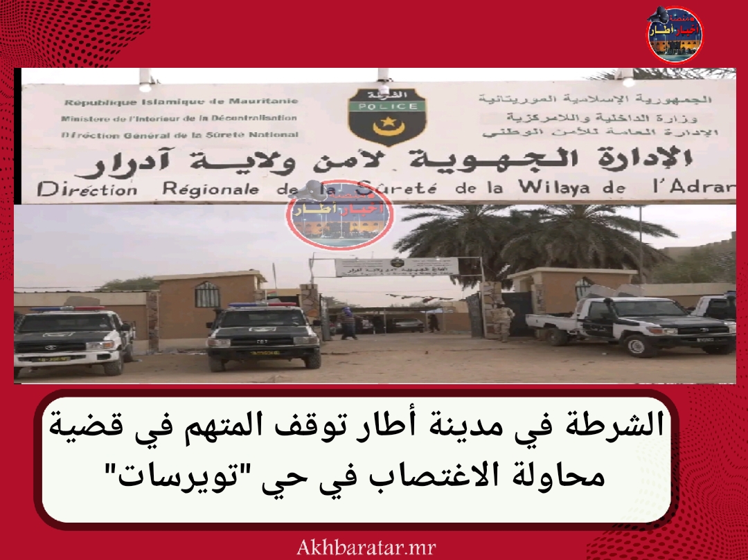 -أخبار (أطار)- أوقفت الشرطة في مدينة أطار مساء اليوم المتهم في قضية محاولة الاغتصاب التي شهدها حي تويرسات قبل أيام.