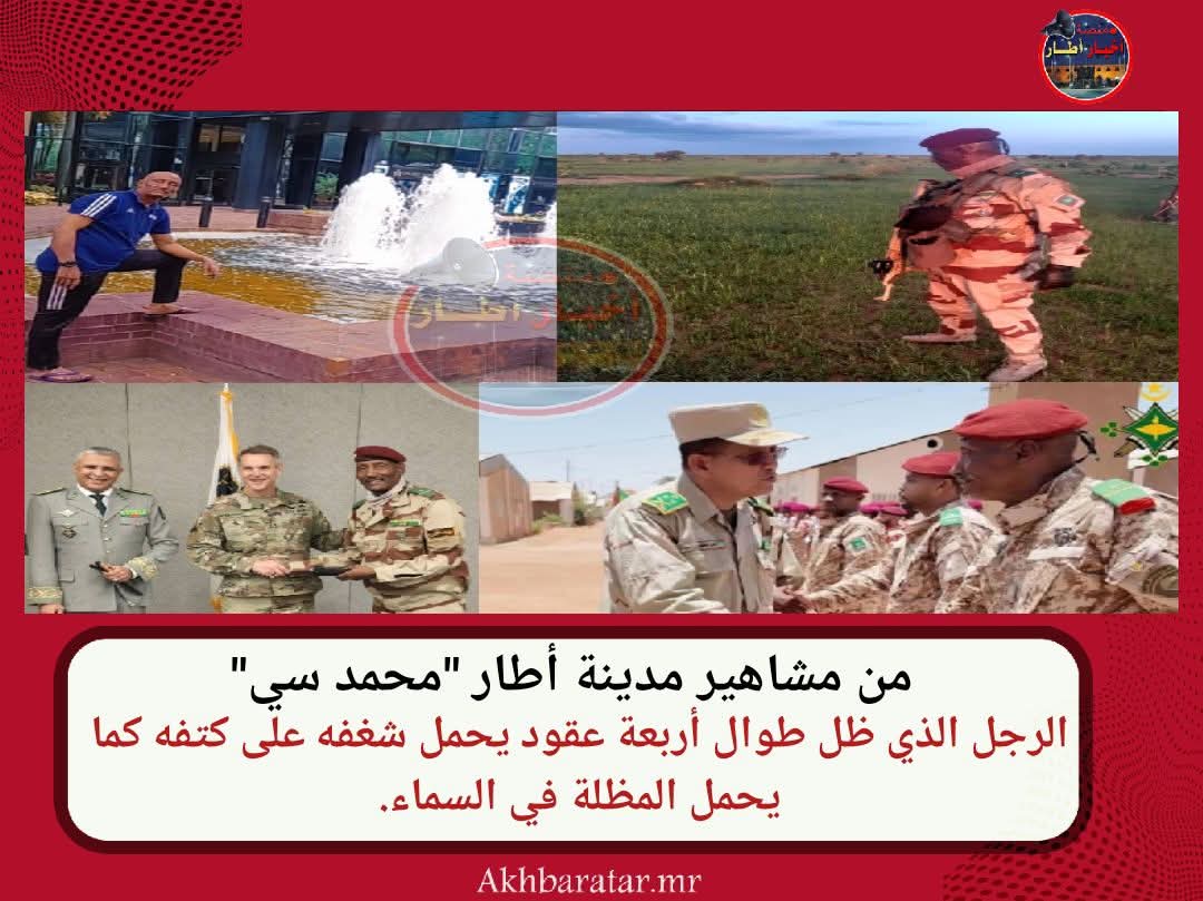 -أخبار (أطار)- من بين أبرز وجوه مدينة أطار يبرز اسم مساعد أول في الكتيبة الأولى للصاعقة و المظليين "محمد سي"، الرجل الذي ظل طوال أربعة عقود يحمل شغفه على كتفه، كما يحمل المظلة في السماء.