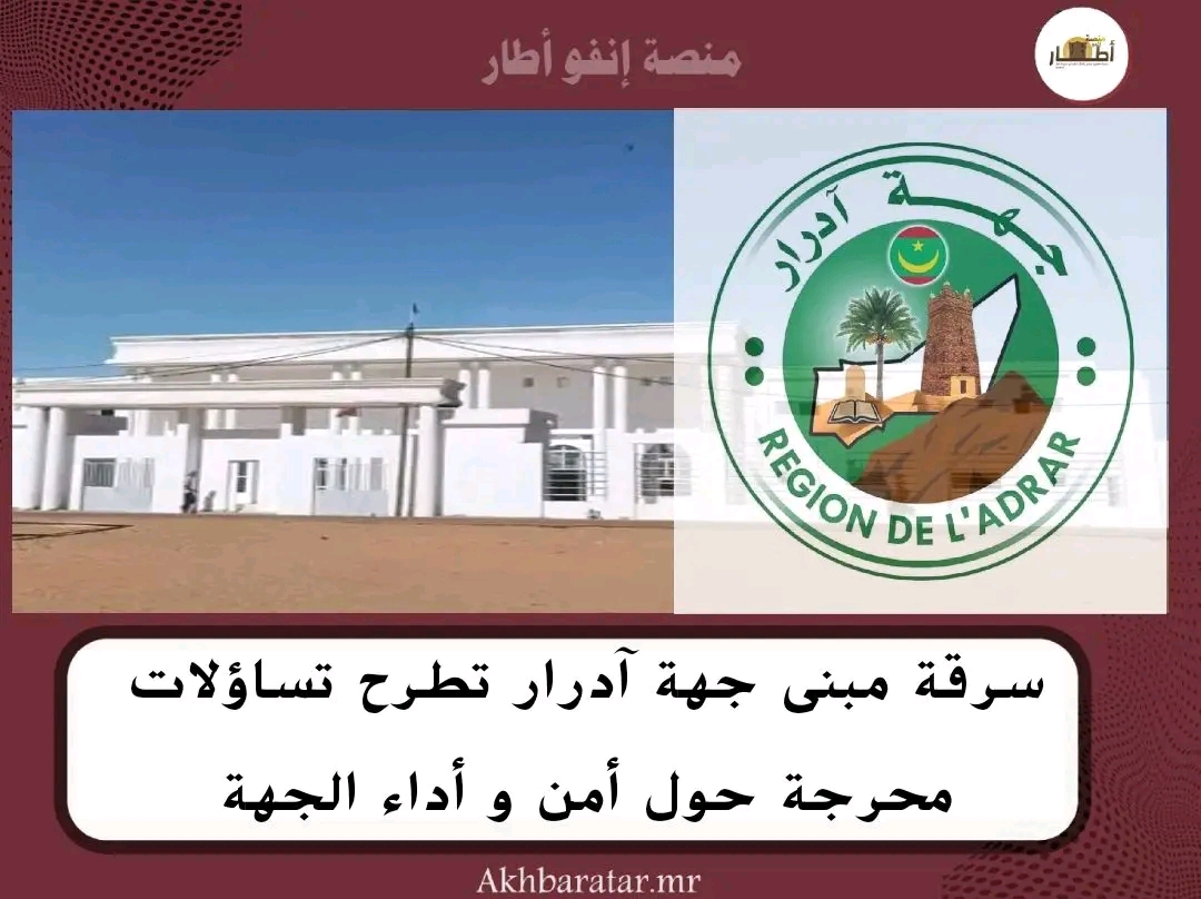 -أخبار (أطار)- تعرض مبنى جهة آدرار لعملية سرقة، تمثلت في الاستيلاء على كاميرات المراقبة المثبتة بالمبنى، إضافة إلى شاشة العرض الخاصة بها، في واقعة تثير أكثر من علامة استفهام حول مستوى التأمين والحراسة داخل مؤسسة يفترض أنها تمثل واجهة تنموية للولاية.