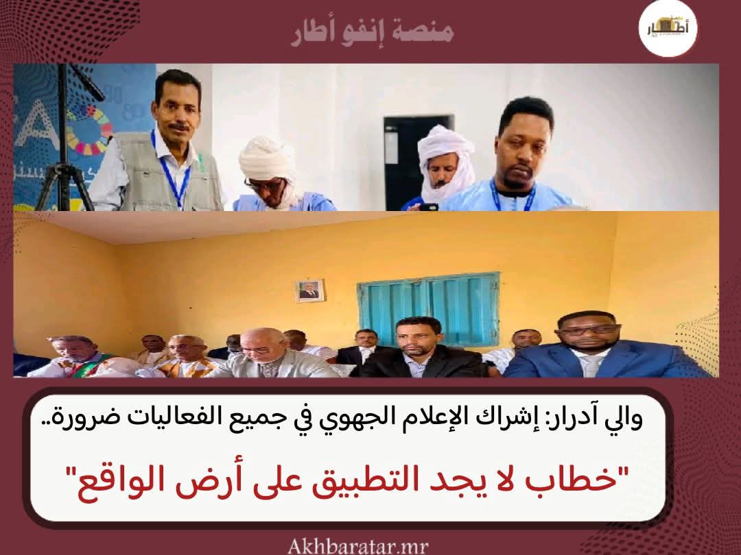 و يؤكد صحفيون و فاعلون إعلاميون في مدينة أطار أن هذا الخطاب لا يجد طريقه إلى التطبيق على أرض الواقع، حيث تم - بحسب قولهم - تجاهل الإعلام الجهوي في النسخة الماضية من مهرجان مدائن التراث، إذ اعتذر الوالي حينها بالمشاغل المرتبطة بالتحضيرات و التنظيم.